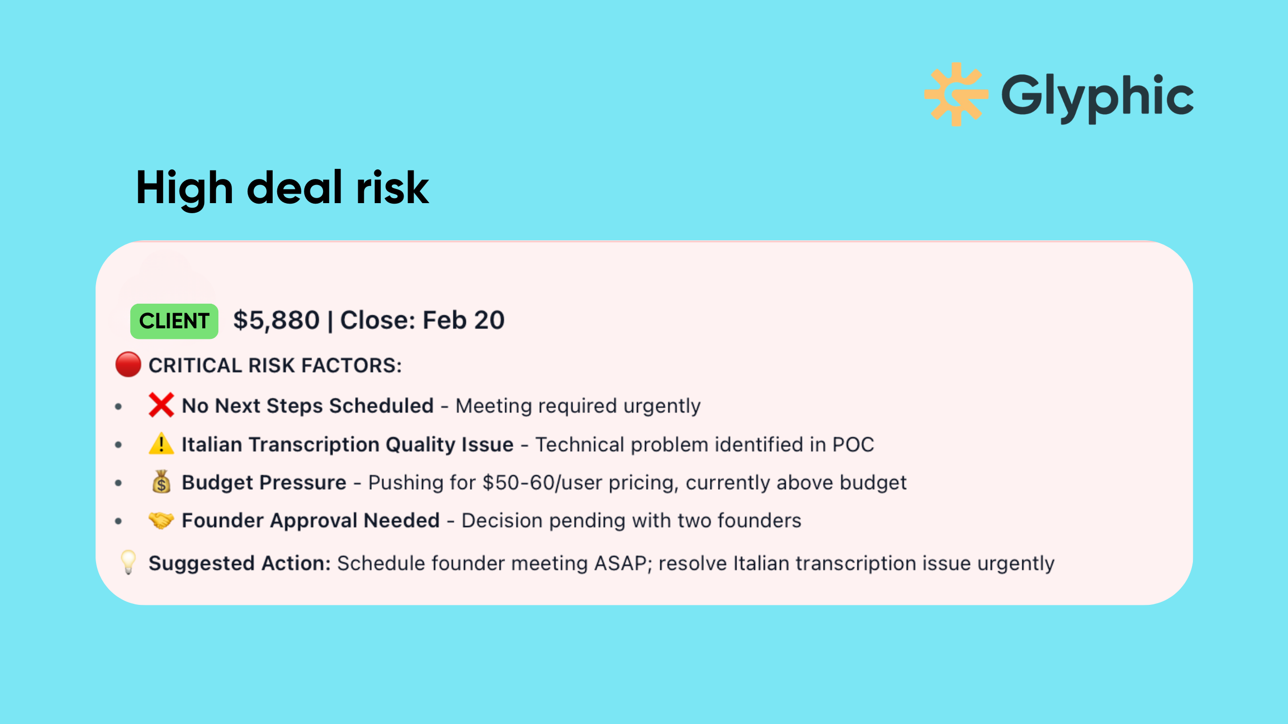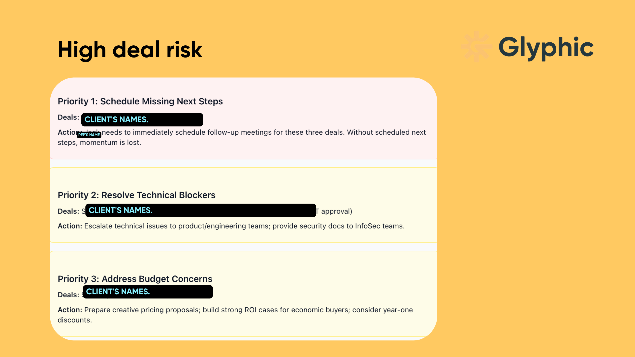 Every week it produces a prioritized list of which deals are most at risk, why, and what needs to happen to de-risk them.